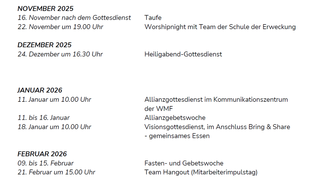 Weiter unten kannst Du unseren letzten Gottesdienst als Video anschauen.