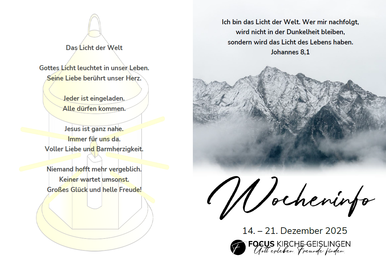 In unserer aktuellen Wocheninfo erhältst Du alle Informationen über die Veranstaltungen der kommenden Woche auf einen Blick!
